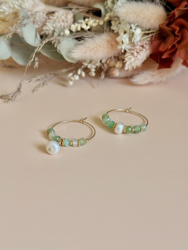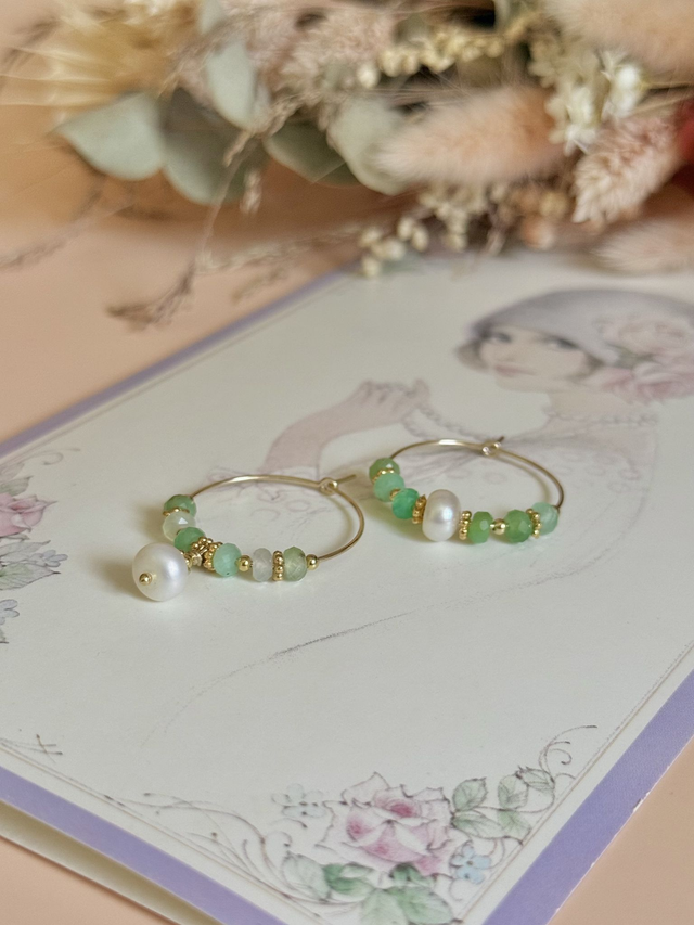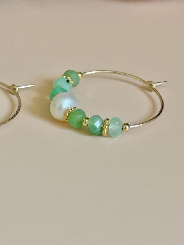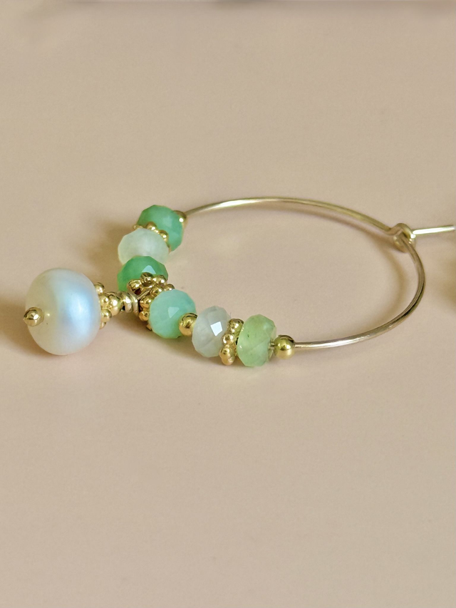 💚 Chrysoprase, Gold Filled 14k, Perles de culture des Philippines, diamètre 25 mm