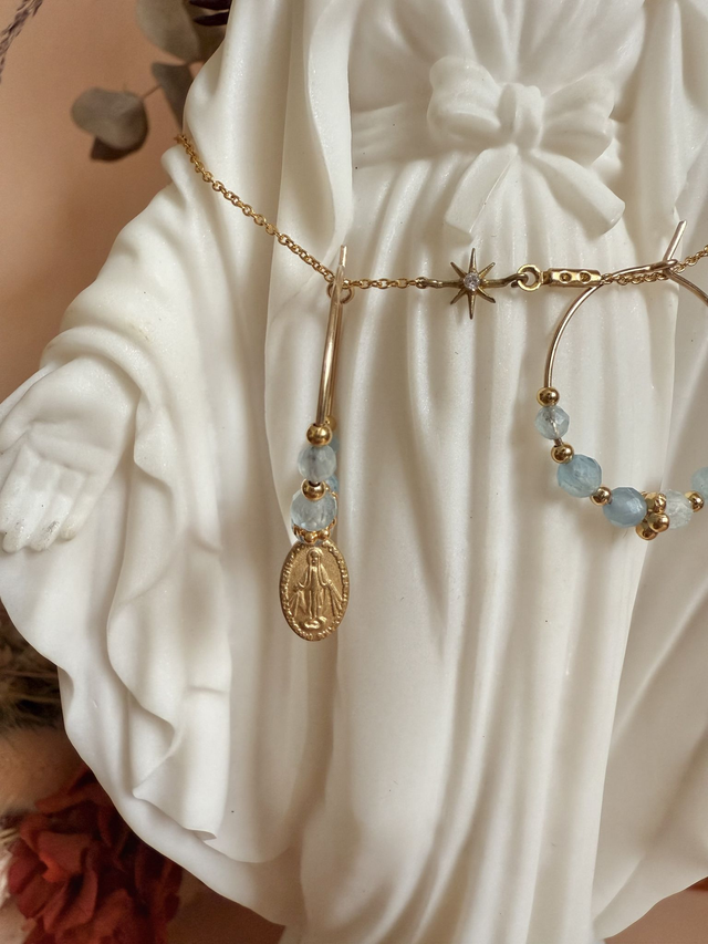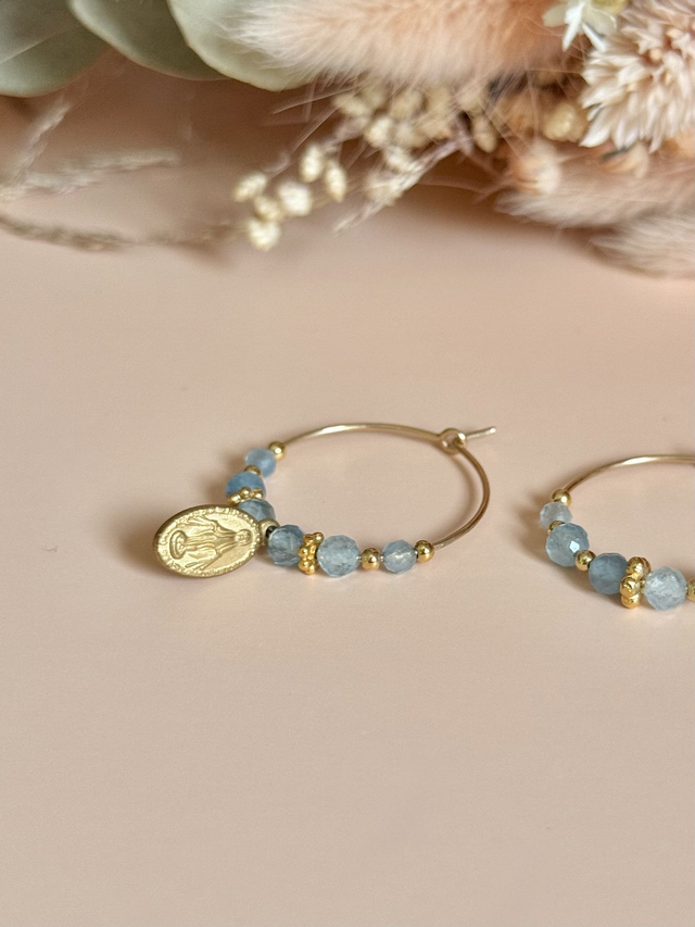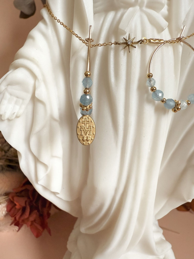 🩵 Aigue Marine, Gold filled 14k, Médaille acier inoxydable, diamètre 23 mm