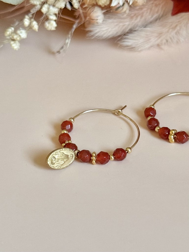 🧡 Cornaline, Gold filled 14k, Médaille acier inoxydable, diamètre 25 mm
