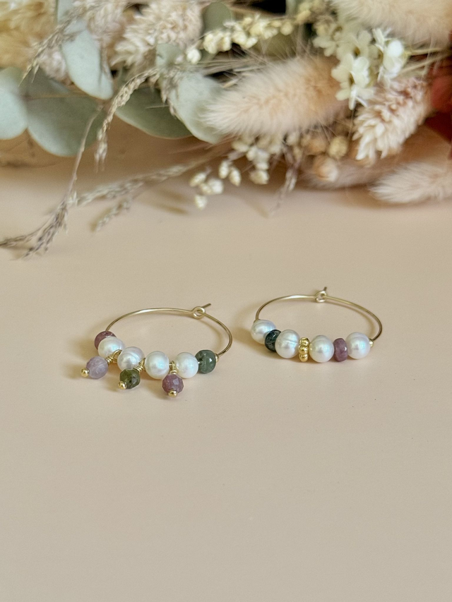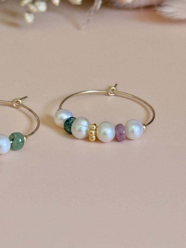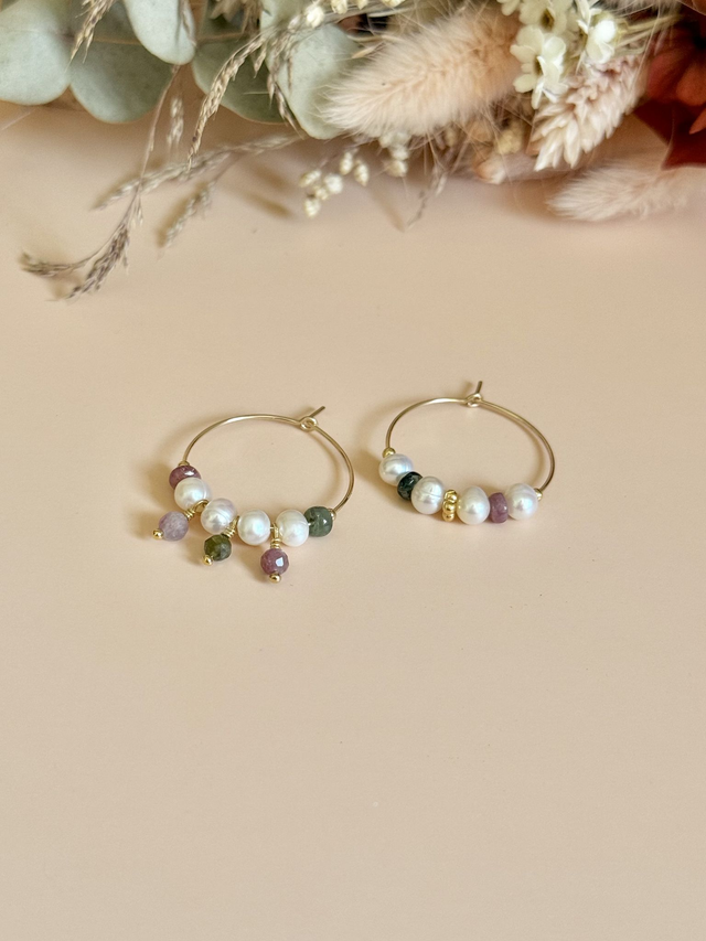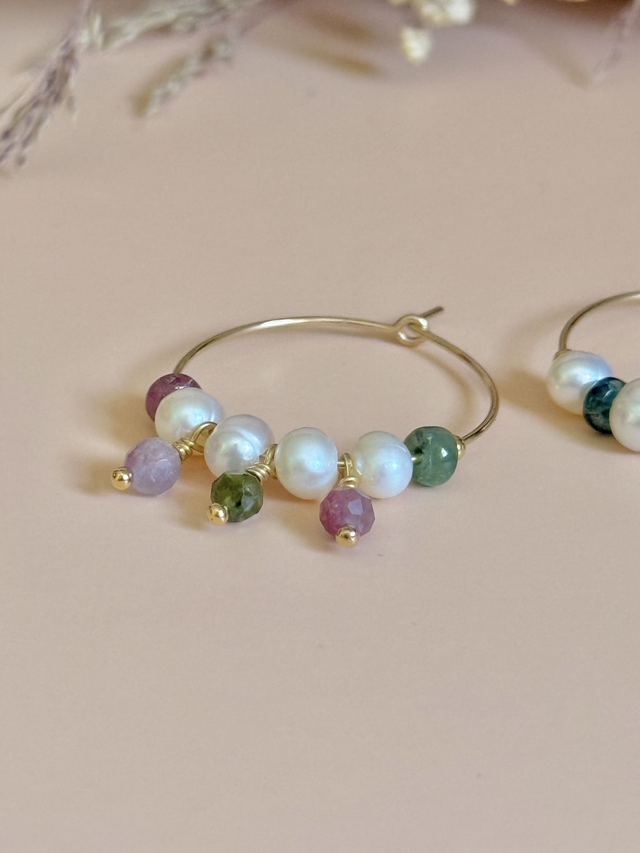 🌷Tourmaline, Perles de culture, Gold Filled 14k, Diamètre 25 mm